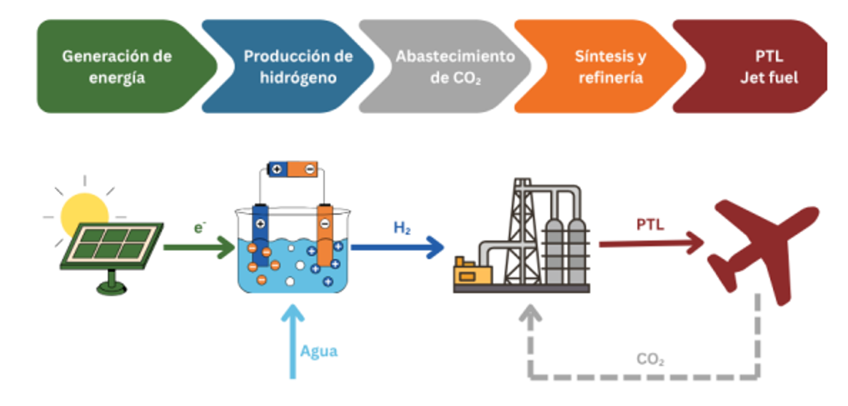 La ruta para producir PtL o e-SAF sería la siguiente: